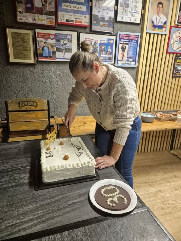 da razreže slavljeničku tortu. došlo je vrijeme za druženje. Vjerojatno