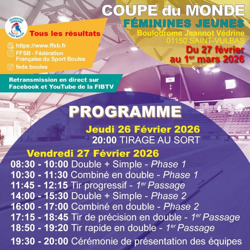 Hrvatska ženska juniorska (U18) i mlađeseniorska (U23) reprezentacija u sastavu Wendy Vukelić i Dora Fućak (BK Čavle ŠB), Magdalena Fućak (ŽBK Drenova-Rijeka) i Ema Maršanić (ŽBK Pula), predvođene voditeljem delegacije Simonom Guljom i trenerom Markicom Dodigom, krenula je 26. veljače na put prema francuskom St. Vulbasu gdje se od 27. veljače do 1. ožujka 2026. godine održava Svjetski kup za boćarice U18 / U23 - trofej „Jeannot Védrine", prvo službeno natjecanje FIB-e u povijesti za taj dobni uzrast mladih boćarica.
