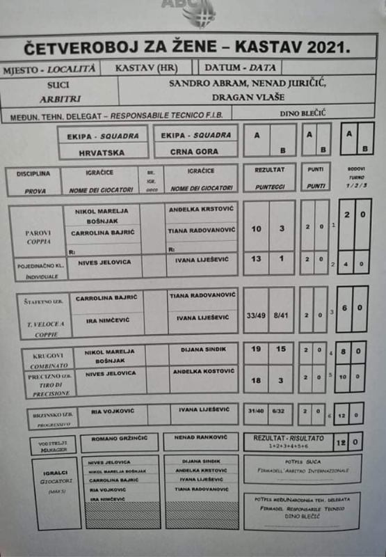 -Reprezentacije Srbije i Crne Gore su bile nešto slabije od očekivanog. No, finalna utakmica je bila stvarno dobra, ali su nas pobjede koštale prve klasične igre. Organizacija BK Kastav bila je super, sve je bilo na vrhunskoj razini i ništa nam nije nedostajalo – rekla je najiskusnija hrvatska boćarica Nives Jelovica.