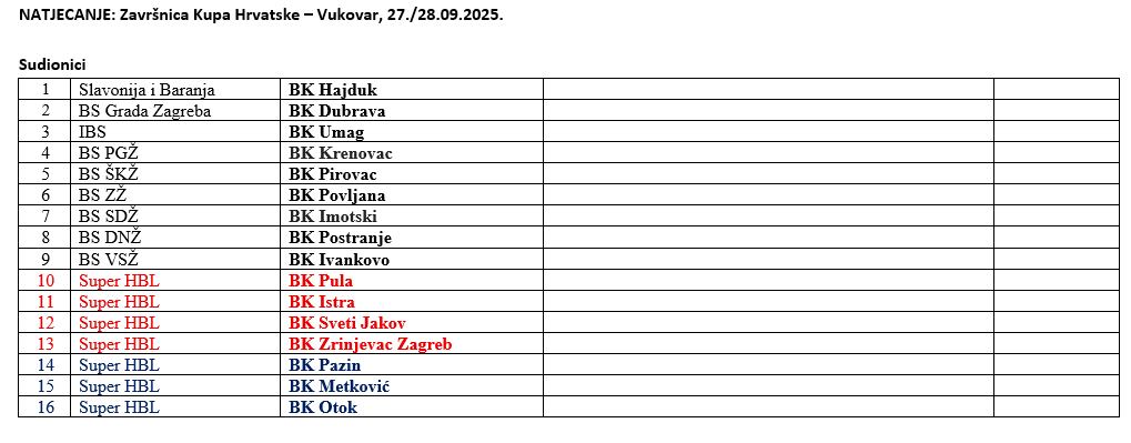 Vukovaru od 27. do 28. rujna 2025. Sudjelovati će ukupno 16 ekipa, a to su klubovi