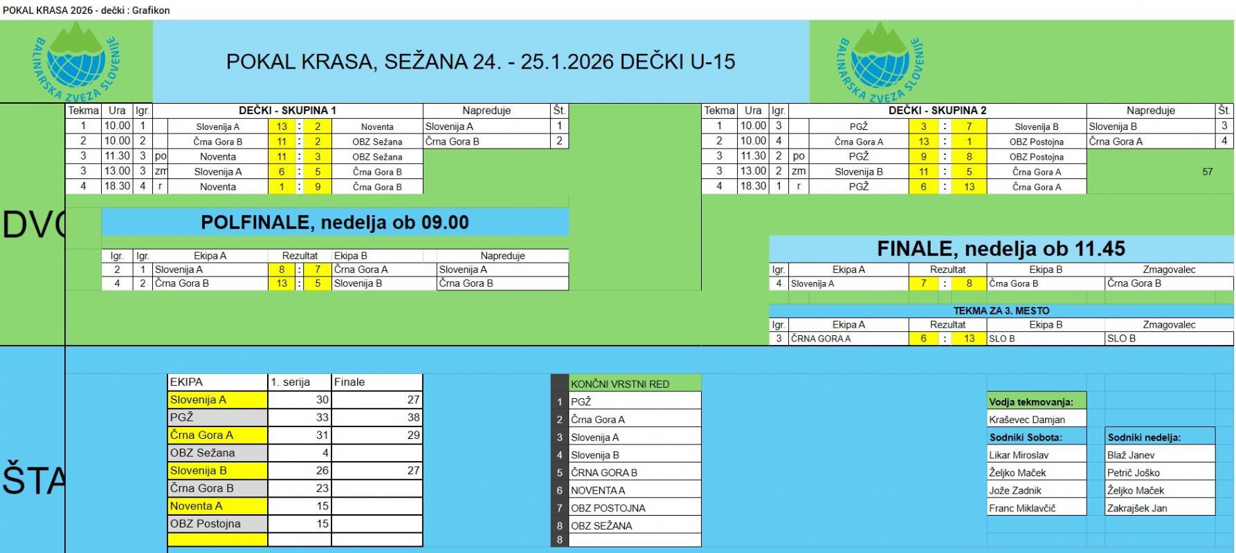 U boćarskoj dvorani Darka Guštine u Sežani, 24. i 25. siječnja 2026., održan je Međunarodni turnir „Kup Krasa 2026.”, koji je okupio mlade boćarice i boćare reprezentacija Crne Gore i Slovenije, kao i selekcije Primorsko-goranske županije, talijanske Novente, OBZ Postojna te domaće OBZ Sežana.